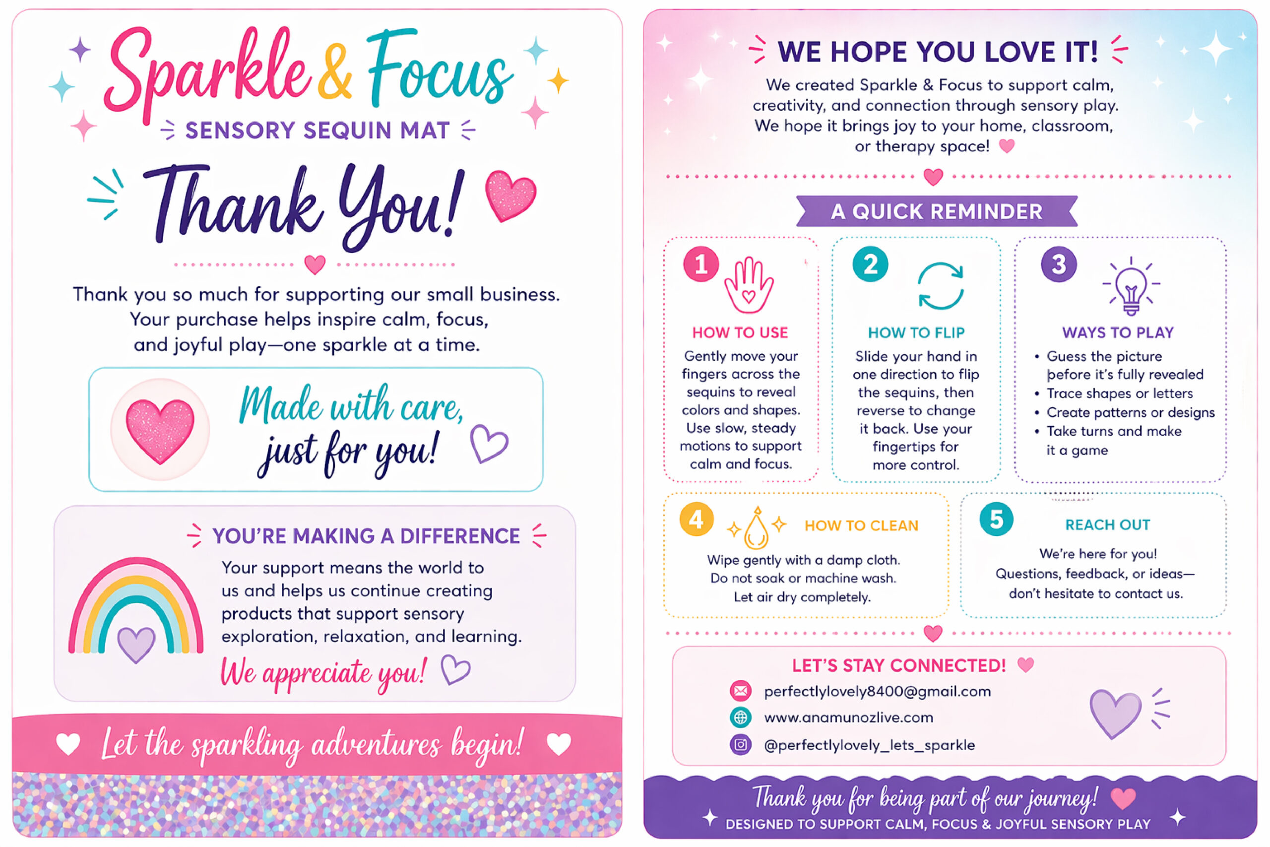 Sparkle & Focus sensory mats are interactive sequin-based tactile tools designed to help children regulate emotions, improve focus, and stay engaged through calming, hands-on movement.