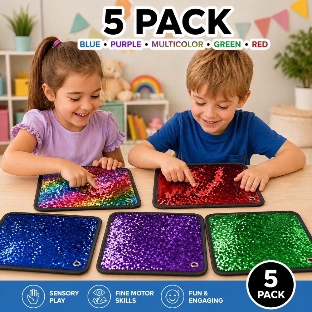 Sparkle & Focus sensory mats are interactive sequin-based tactile tools designed to help children regulate emotions, improve focus, and stay engaged through calming, hands-on movement.